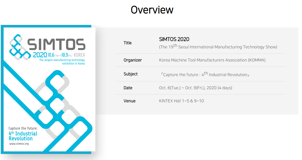 Considering health and business of exhibitors, attendees, and official contractors as top priority, it is not possible to host SIMTOS which the most attendees visit in Korea. They decided to cancel SIMTOS 2020 scheduled for Oct. 6~9, 2020 eventually.